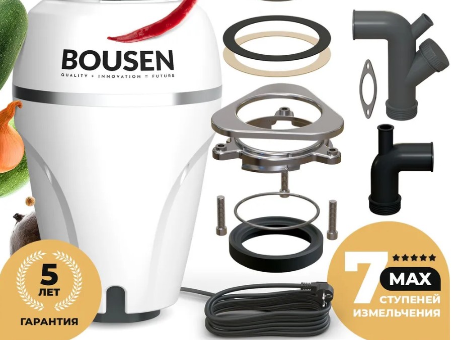 Измельчитель пищевых отходов Bousen DISPOSER ULTIMATE электрический для раковины — Объем камеры 1,5 л — Производительность 6 кг/мин — 750 Вт, 3800 об/мин — Дистанционная кнопка управления