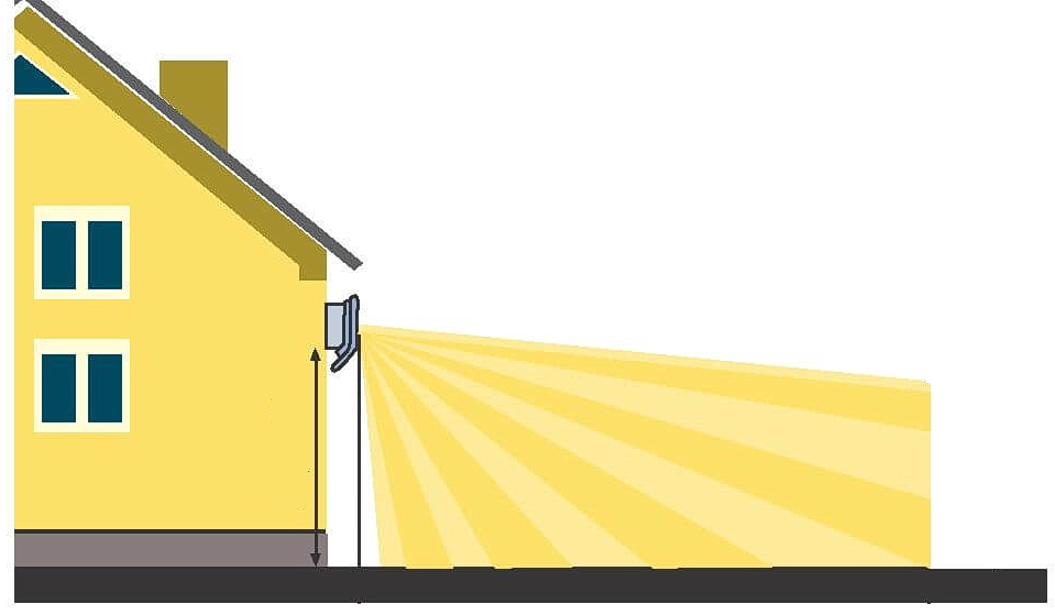 Оптимальная высота установки датчика движения — около 2.4 метра. В этом случае даже те модели, которые могут охватывать всего 15-20° по вертикали контролируют достаточное пространство. Настройка угла наклона — это очень приблизительное название того, чем вам придется заниматься. Будете понемногу менять угол наклона, проверять, как срабатывает в таком положении датчик с разных возможных точек входа. Несложно, но муторно.