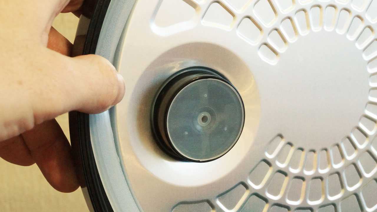 Приходится подлазить туда влажной губкой и сделать это не так-то просто. Плюсом идет эта же верхняя крышка, которая не подпружинена и будет вот так падать на мультиварку, если ее не придерживать. Спишем это все на попытки удешевления продукта, но если честно, я не думаю что одна пружинка сильно увеличила бы ее стоимость. К счастью, хоть фильтровой клапан сделали нормальным и его можно вот так вытянуть и помыть.