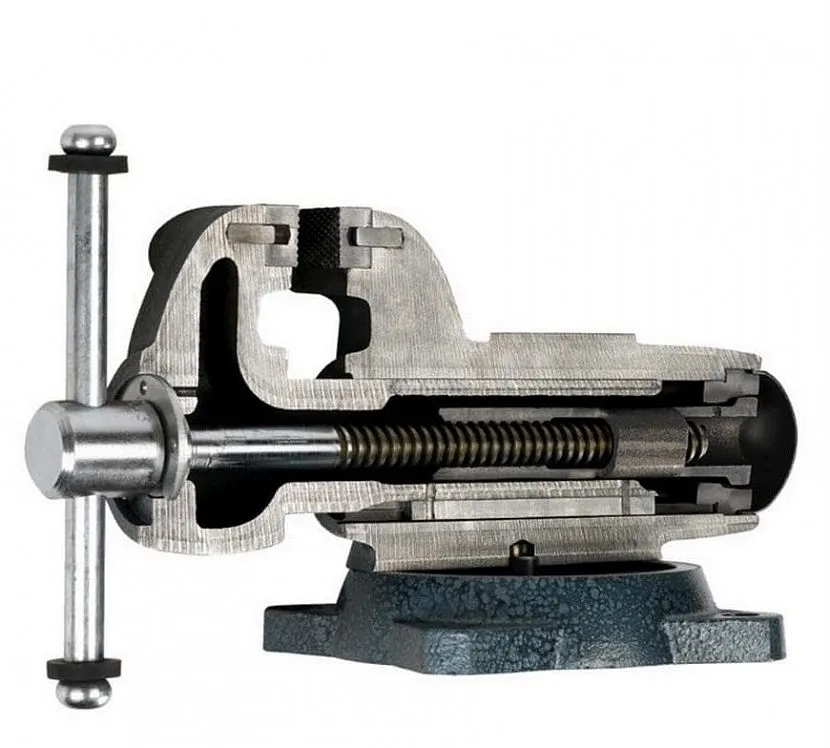 В различных моделях тиски имеют дополнительные элементы и детали, придающие инструменту дополнительных свойств.