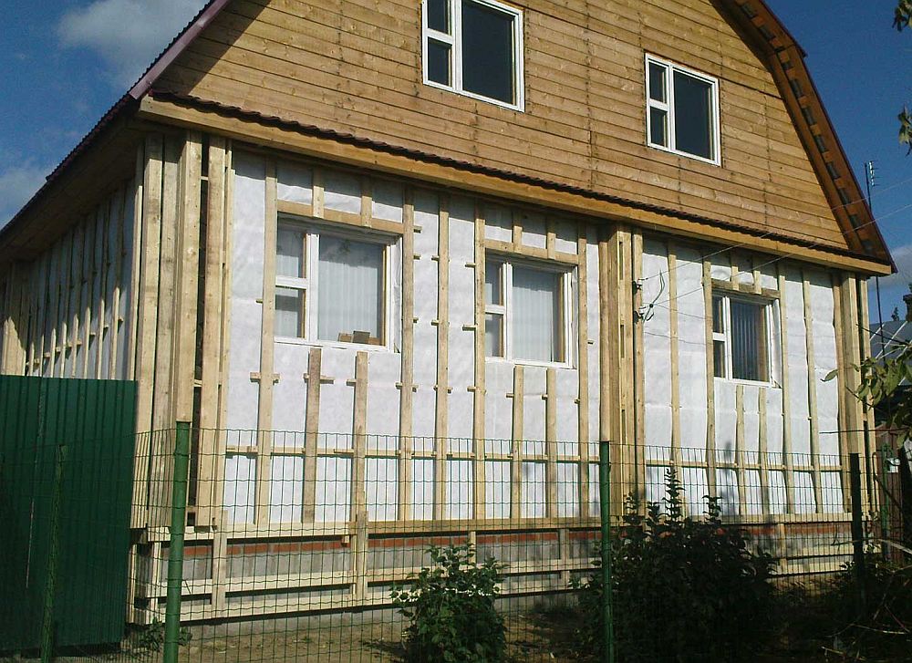 Установленные бруски являются основой для монтажа фасадной облицовки: винилового сайдинга, листов ЦСП, блок-хаус и т. п.