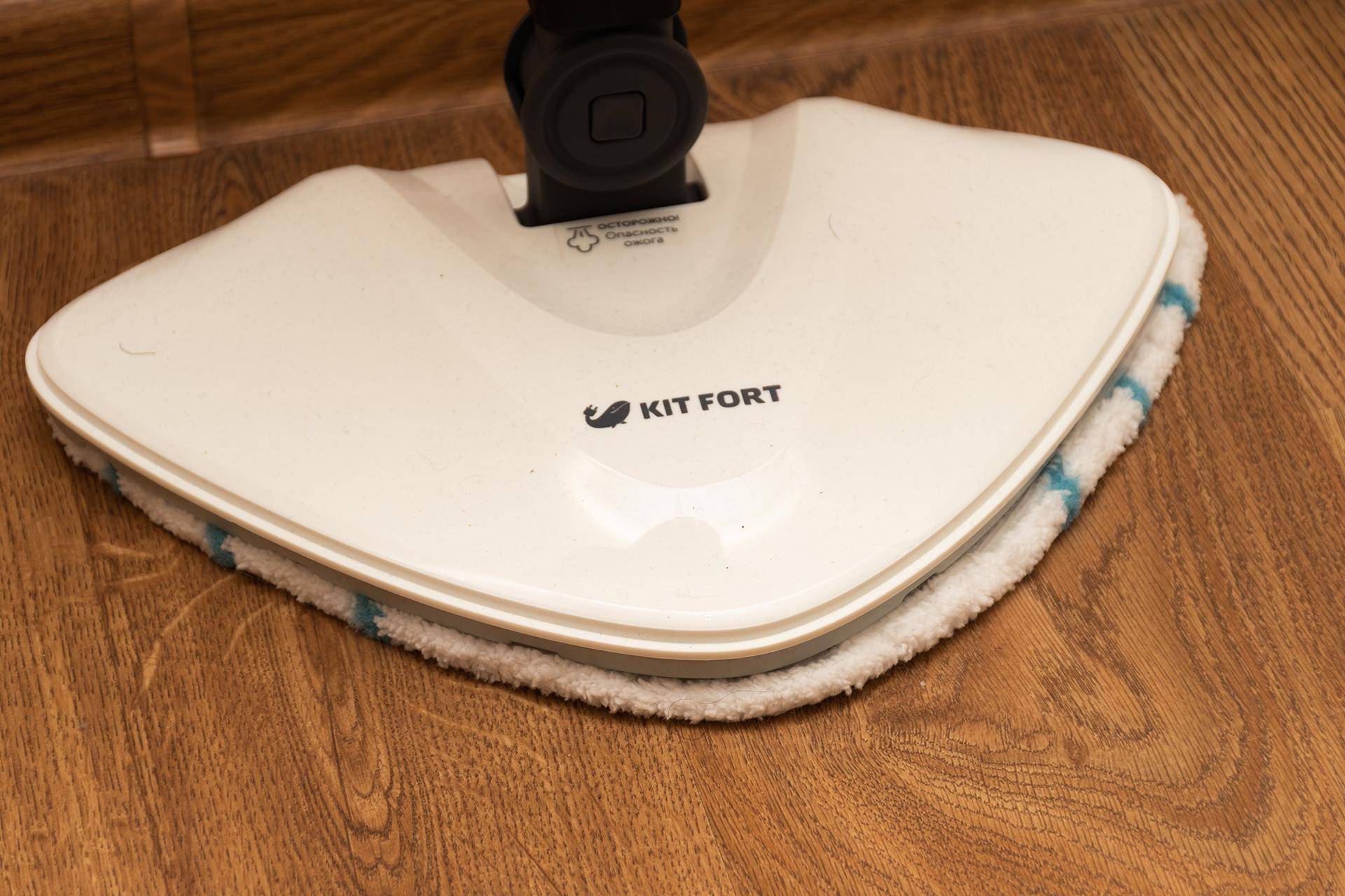 Это недорогая, но практичная модель. Kitfort КТ-1010 хорошо справляется с загрязнениями и дезинфицирует поверхность благодаря пару. Благодаря достаточно высокой мощности, вода быстро нагревается и швабра готова к работе. Объема резервуара хватает для уборки небольшого помещения площадью 14 кв.м. Особенностью комплектации является щетка для пола, вращающаяся в двух плоскостях.