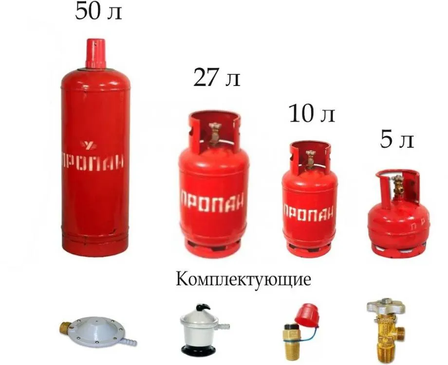 В нашей стране для бытового газоснабжения чаще всего используются стальные пропановые баллоны, вместимостью 5, 12, 27 и 50 литров. Такие емкости легко отличить от других, – они всегда окрашиваются в красный цвет.