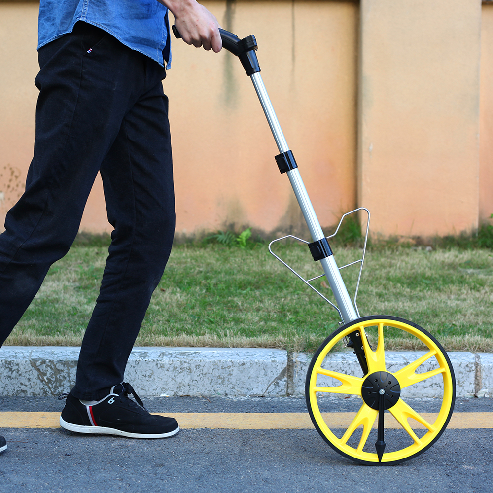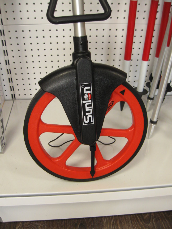 Эти тяжеловесы, называемые ещё измерительным дорожным колесом, созданы для работ непосредственно на грунте, когда извилистый рельеф мешает качественно измерить длину полосы либо расстояние между объектами на месте.