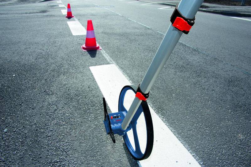 Дорожное колесо используют практически при всех видах ремонтных работ на дороге или при прокладке коммуникаций. Прибор с точностью до десятой сантиметра способен определить расстояние между выбранными местами. Аппарат легок в применении все, что требуется от пользователя – настроить высоту под свой рост и идти в выбранном направлении