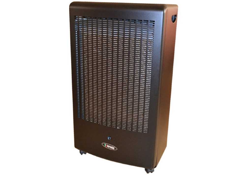 Модель с закрытой камерой сгорания и чугунным теплообменником. У нее есть вентилятор и термостат, работает она от сжиженного или природного газа, управление осуществляется электроникой. Мощность обогрева – 2.2 кВт.