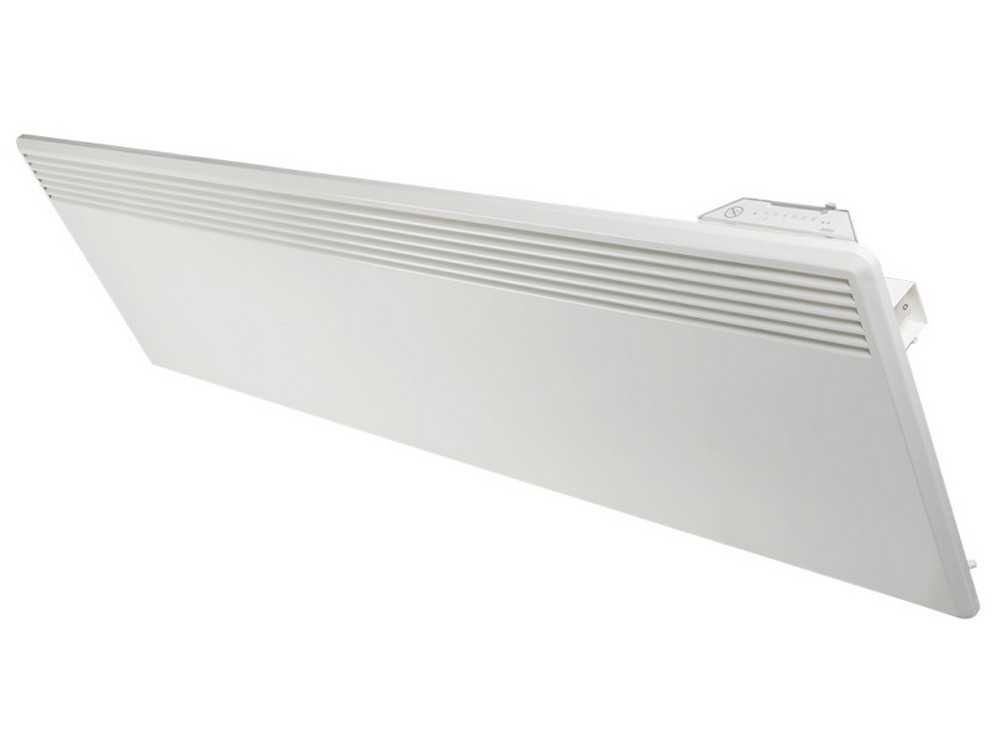 Премиальные настенные электрические конвекторы выпускает компания Noirot Spot. Модель E-5 1000 обогреет комнату в 15 квадратов и делает это с помощью ТЭНа 1 кВТт. У нее три скорости нагрева, температура выставляется посредством электронного табло, а все установки отобразятся на экране. Этот обогреватель можно использовать во влажных помещениях, среди защитных механизмов – антизамерзание и выключение при перегреве.