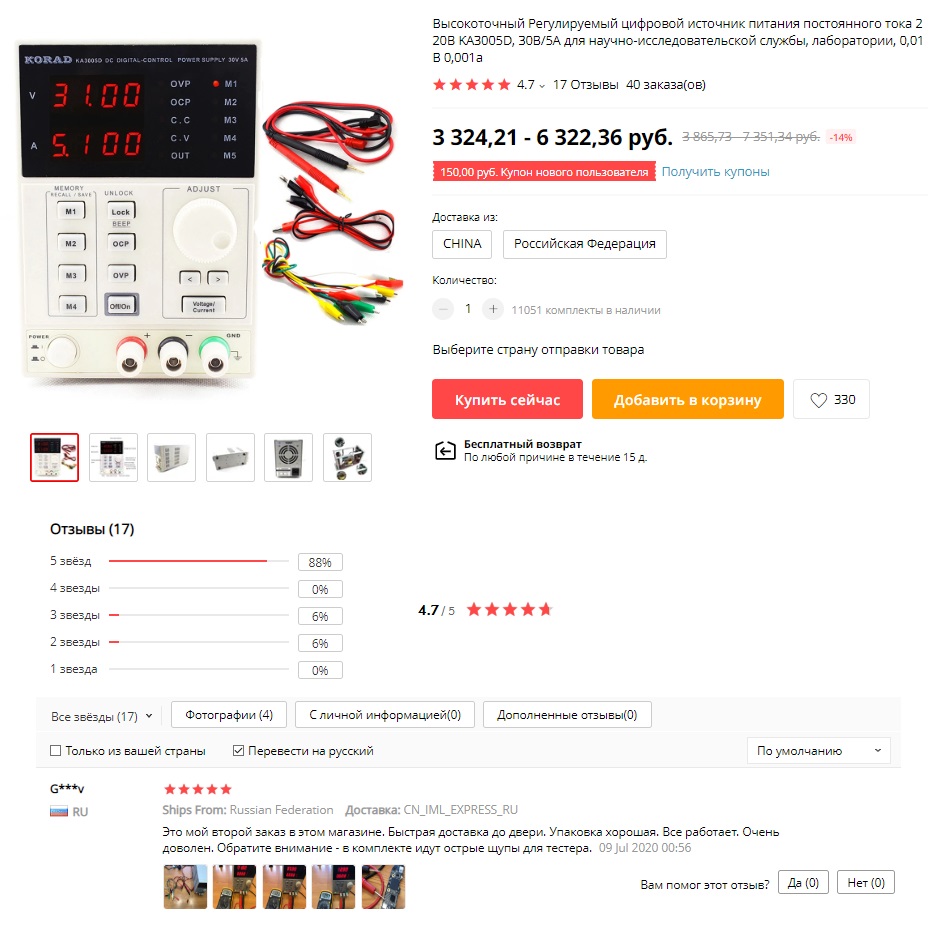 Модель лабораторного блока питания новая, но получила достойную оценку пользователей