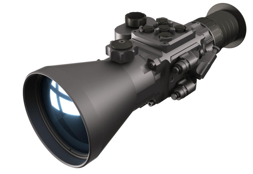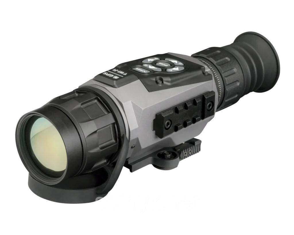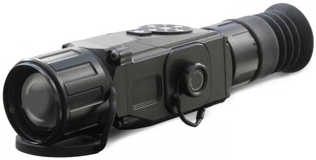 Цифровой ночной прицел, которым можно пользоваться и днем. Спроектирован так, что выдерживает ударную нагрузку крупных калибров, прибор можно устанавливать на пневматическое, нарезное и гладкоствольное оружие. Вес прицела флир всего 600 грамм.