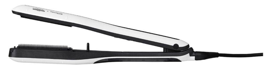 Это профессиональный выпрямитель, который можно использовать не только в салоне, но и в домашних условиях. На обеих пластинах сделаны специальные отверстия, которые пропускают пар. Это обеспечивает нужный уровень влажности, улучшает состояние шевелюры, и средства для ухода лучше проникают в кутикулу. В комплектацию устройства входят сумка и термоковрик.