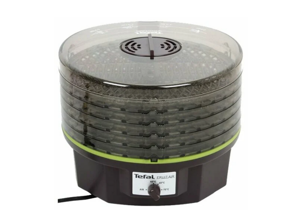 Конвективный. Самый распространенный вид дегидраторов (сушилок). Принцип прост: влага выделяется из продукта, подвергая его потоку горячего воздуха от нагревательного элемента с вентилятором.