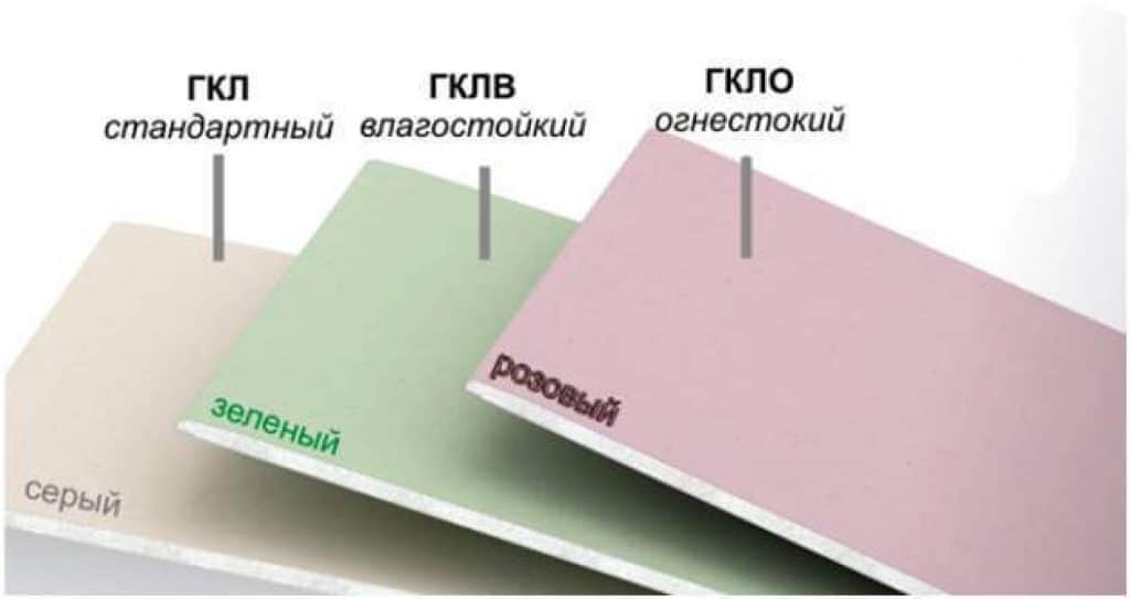 Характерная окраска различных видов гипсокартона