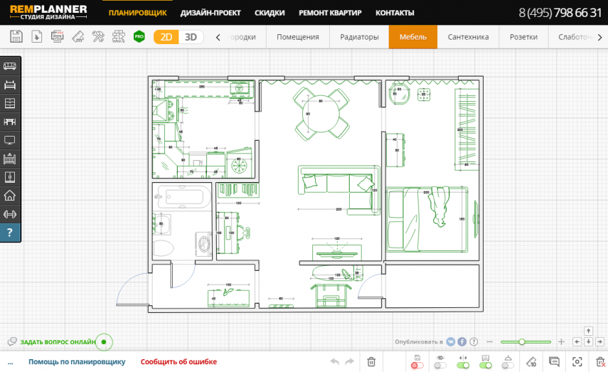 Онлайн-сервис, которым можно пользоваться на бесплатной основе. Тут вам и отличный функционал, и возможность работать напрямую с браузера без необходимости скачивать и устанавливать программное обеспечение. Planner 5D позволяет: