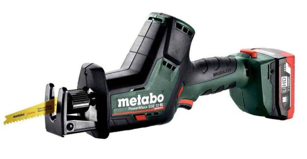 - Metabo – немецкая компания, производящая профессиональный электроинструмент. Она выпускает как сетевые, так и аккумуляторные пилы, отличающиеся большой мощностью, хорошей производительностью, малым весом (около 3.5 кг). Для них характерны обороты в 2600-3100 в минуту, в зависимости от модели, продуманная эргономика, яркая подсветка рабочей зоны, блокировка случайного включения. Все это гарантирует эффективную, безопасную и комфортную работу. Фирма предлагает богатую комплектацию, в которую обычно входит кейс для хранения и транспортировки устройств, несколько пильных полотен, а иногда даже сразу две емких батареи. Бренд выпускает аккумуляторы для шуруповертов и другого автономного инструмента.