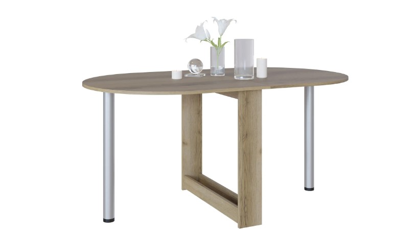 - Раскладной стол. Идеальное решение для небольших кухонь, сочетающее в себе простой механизм раскладывания, компактные размеры и практичность. Круглые раскладные столы для кухни предполагают наличие одной или двух боковых частей, которые легко раскладываются в стороны, становясь дополнительным пространством для рассадки гостей. Говоря простым языком, это всем известный «стол-книжка».