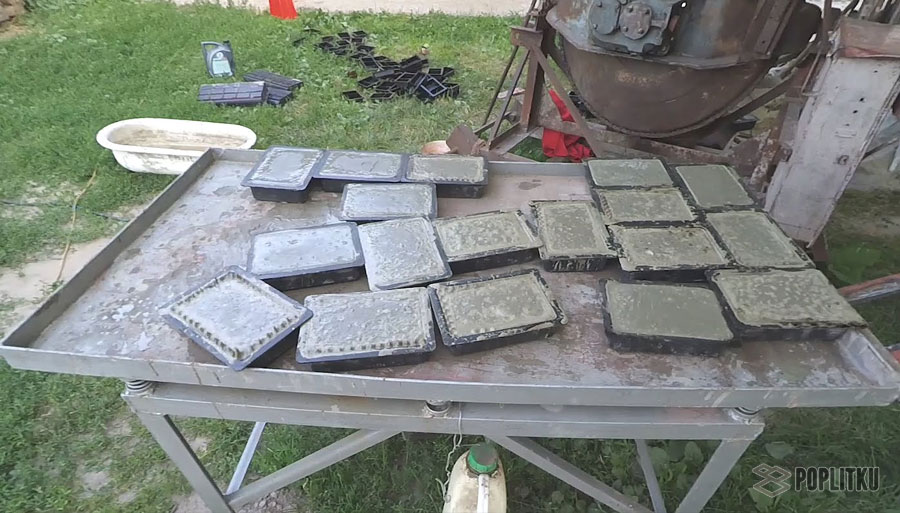 Старайтесь формировать плитку единого размера, то есть, чтобы не было перепада по высотам, так будет легче её после укладывать. Перед заливкой бетона в формы, обработайте его заранее маслом или мыльным раствором, что для вас предпочтительней.