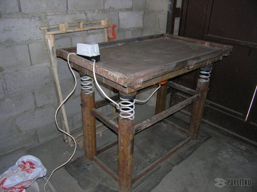 считается вибростол. Он используется в маленьких мастерских, где изготавливается тротуарная плитка. Посредством него создается постоянная вибрация для уплотнения и последующего застывания.