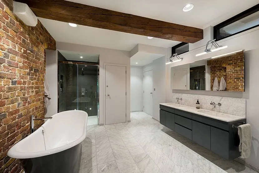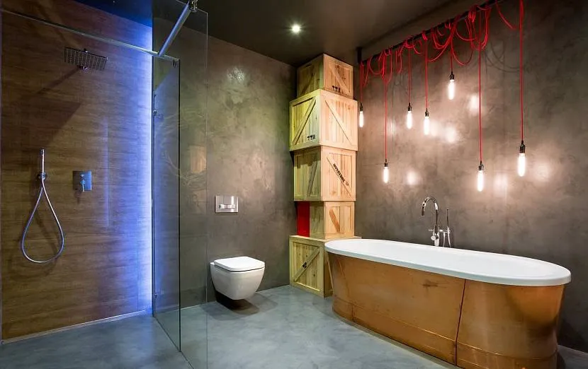 Удачная комбинация лофт и минимализма в одной ванной комнате