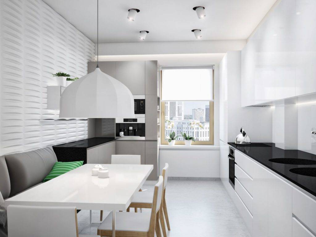 Кухонная мебель подбирается в зависимости от площади помещения. Прямой диван может быть небольшого размера и напоминать небольшое кресло. По габаритам узкая мебель занимает от 0,8 до 1,5 м. Глубина варьируется от 40 до 60 см.