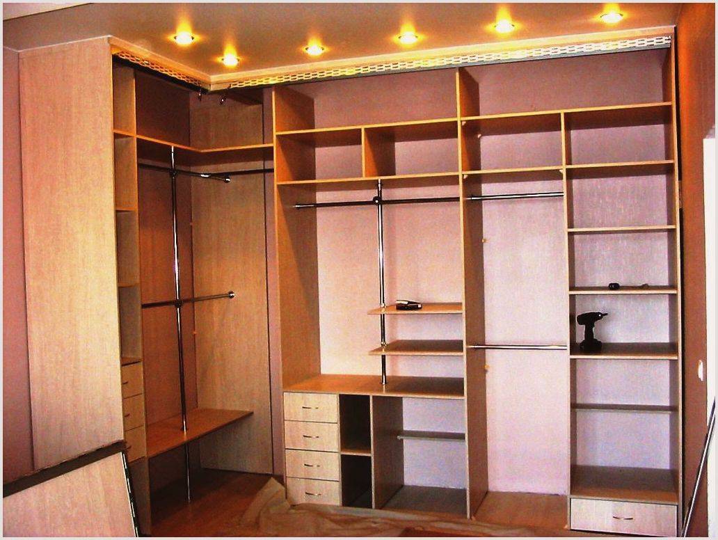 - Посередине устанавливаются одна над другой штанги с вешалками. По сторонам делают полки и выдвижные ящики.