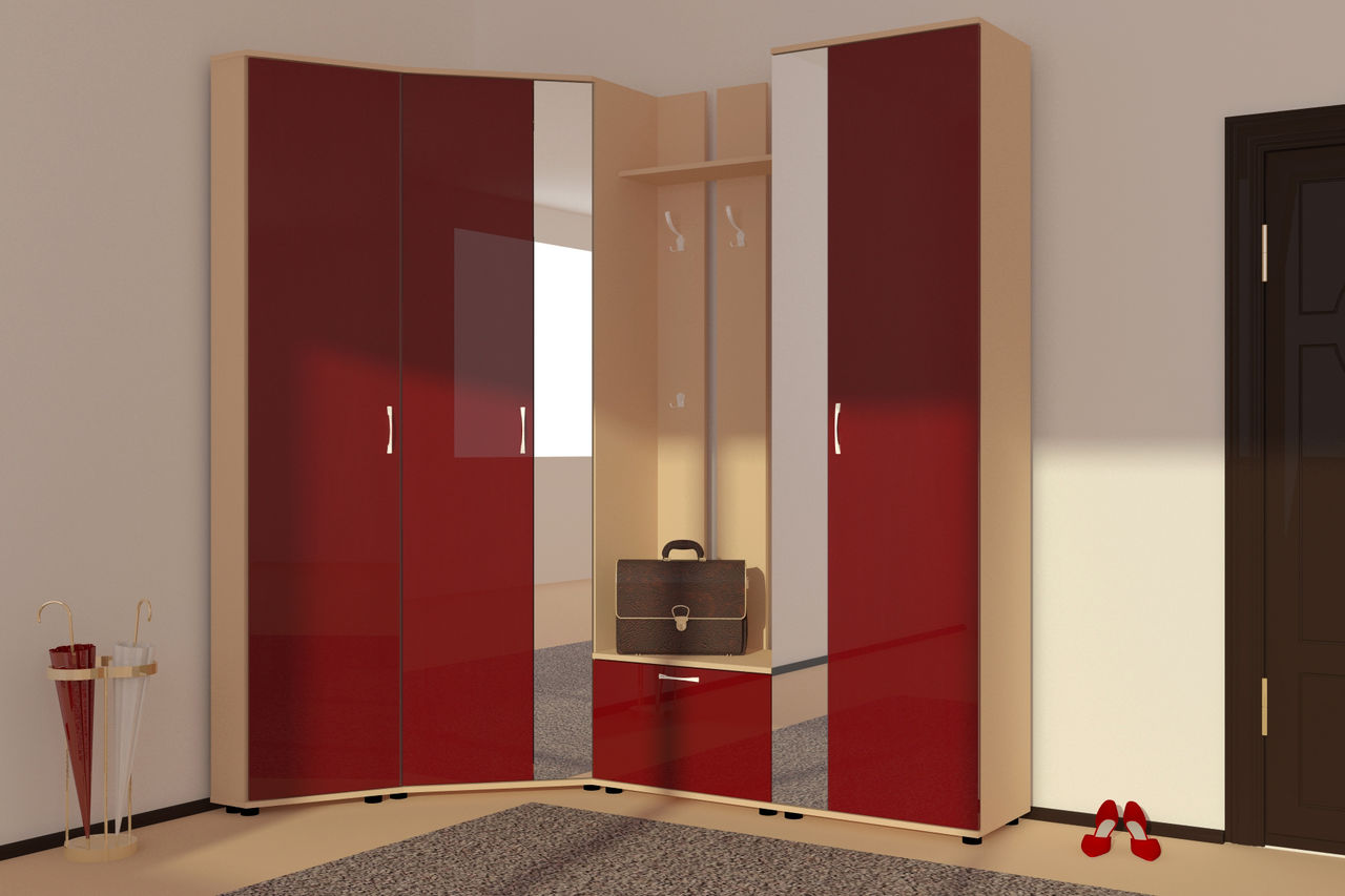 - шкаф может оснащаться прямыми углами или быть радиусным, поэтому выбирается подходящая модель для коридора;