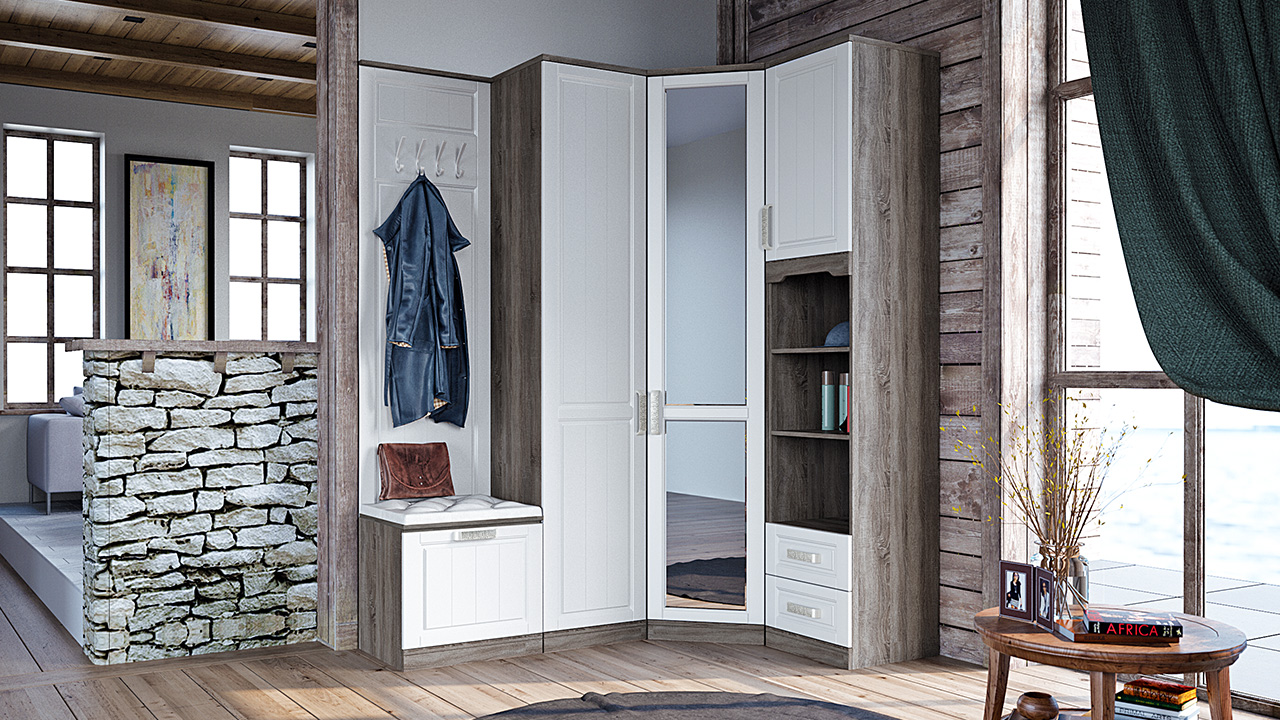 Маленькие угловые прихожие тоже лучше смотрятся в формате стенки.
