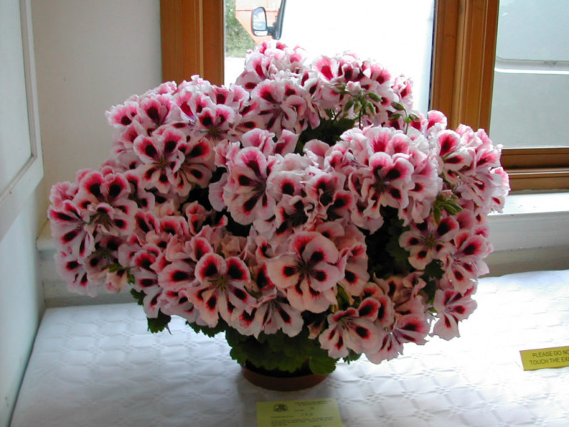 Высота взрослых экземпляров может достигать 60 см, а цветы в диаметре составляют примерно 7 см. При этом королевская пеларгония отличается продолжительным цветением: при правильном уходе этот период может длиться до 5 месяцев. Чтобы добиться этого, нужно выставлять горшок с геранью в хорошо освещенное место, причем притенять культуру нужно только в самые жаркие дни, когда существует риск ожога листьев.