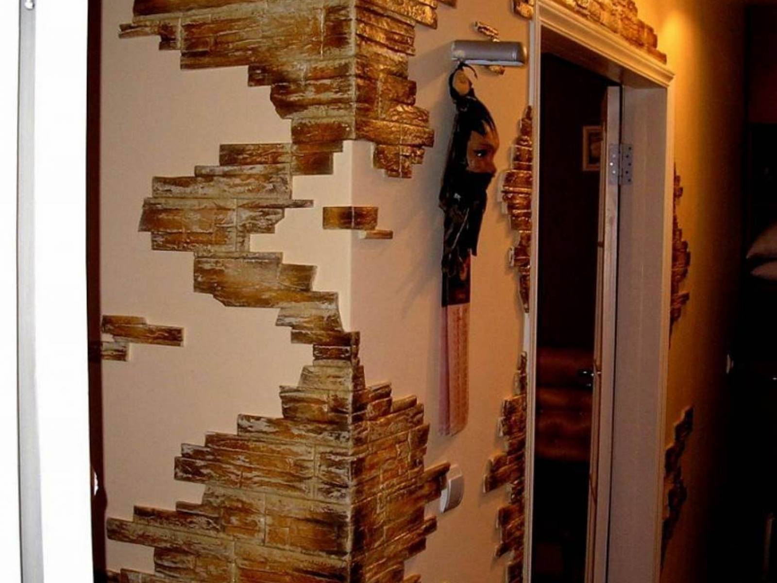 Он легкий, недорогой, практичный и доступный. С ним приятно и просто работать, а в интерьерах он используется уже много лет. Фактура напоминает песчаник, поэтому чаще всего декоративный камень из гипса окрашивается именно под него.