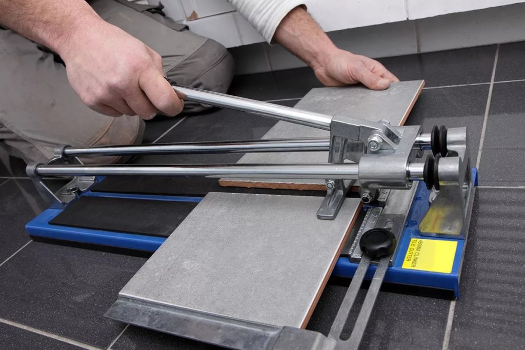 Практически ни один монтаж керамических изделий не обходится без необходимости обрезки плитки. Резать ее можно как стеклорезом, так и с помощью станков с алмазным режущим кругом. Механическим инструментом керамический материал режется так же, как и стекло. Режущим колесиком следует провести по разметке на горизонтальной стороне изделия и произвести слом. Массивную кафельную плитку с помощью ручного плиткореза красиво обрезать не получится. Удобней всего использовать механический станочный плиткорез, имеющий площадку с ограничителями для размещения изделия. С его помощью довольно легко обрезать целый ряд кафеля одинакового размера.