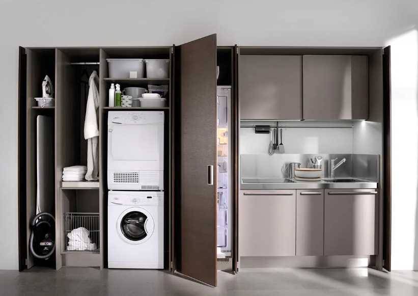 - в шкаф – этот прием удачен для просторного кухонного помещения;