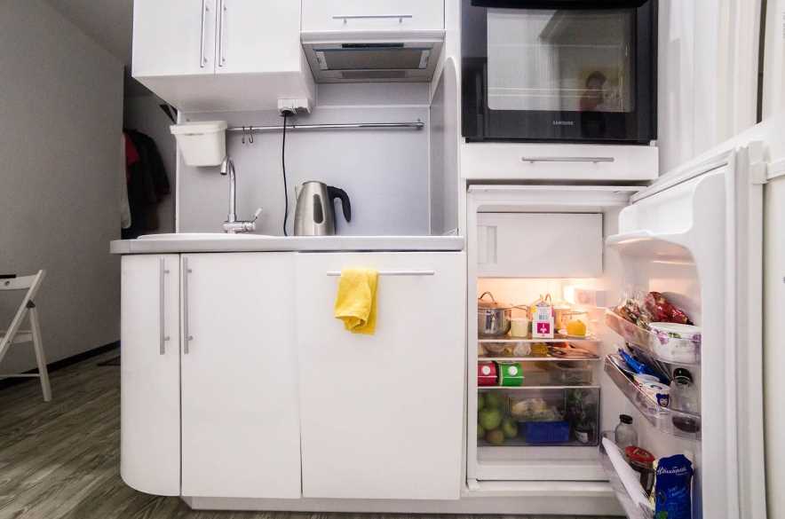 - каждый вид техники подключается к отдельной розетке. Дело в том, что микроволновка и холодильник по отдельности потребляют немалую мощность, а одного источника на двоих может не хватить.