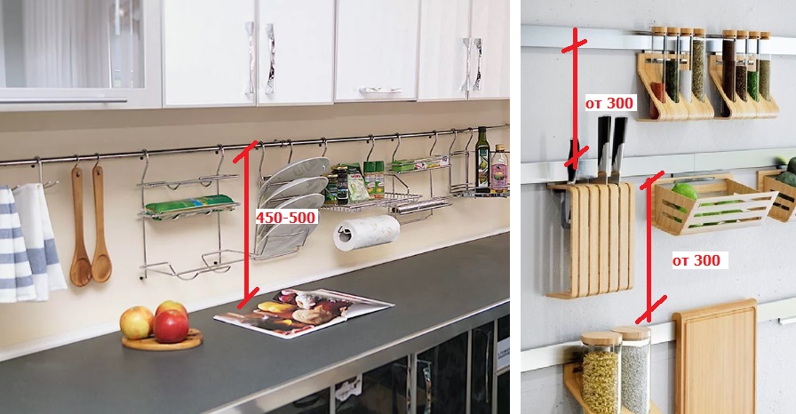 И напоследок несколько важных советов как рейлинги для кухни расположить: