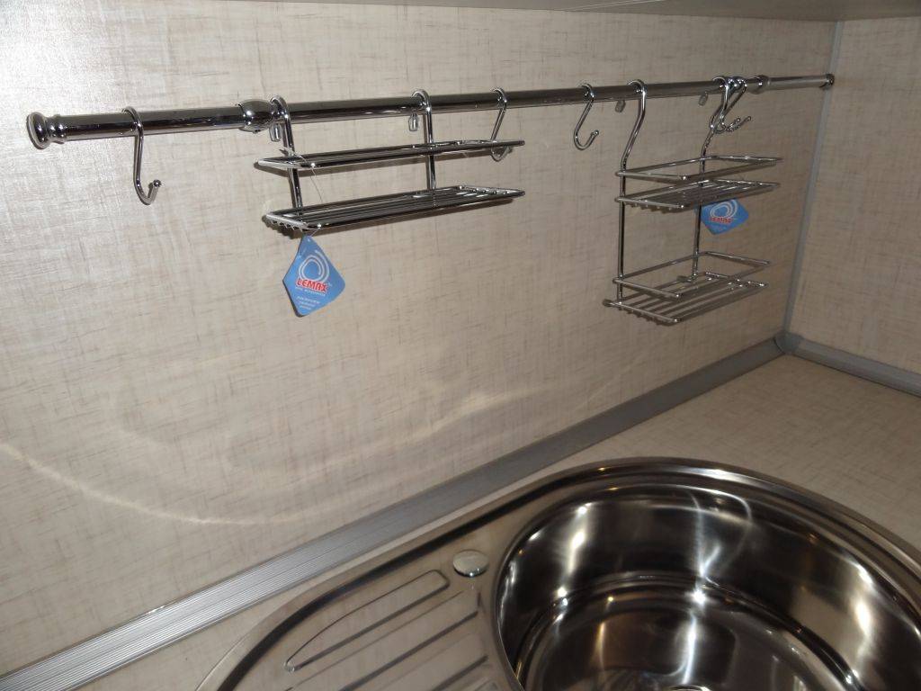 Среди дополнительных аксессуаров к рейлингам на кухне самыми распространенными считаются: