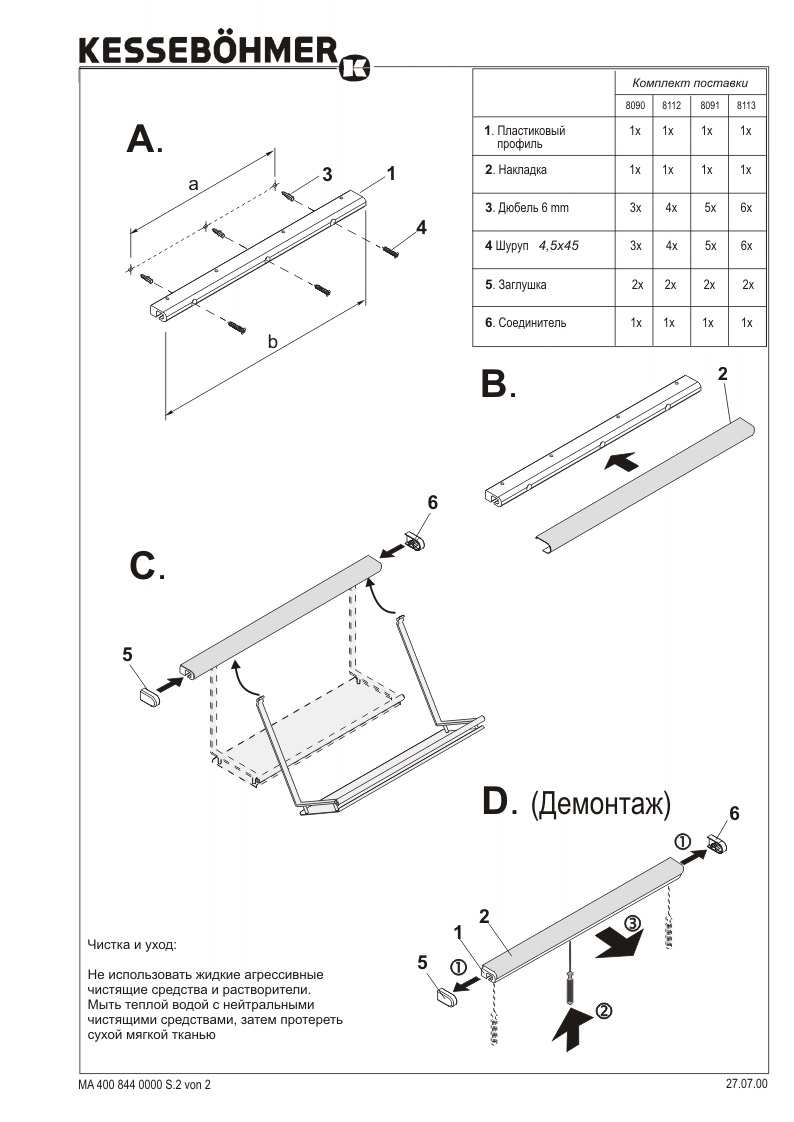 - Распакуйте комплект рейлингов и проверьте наличие всех необходимых элементов.