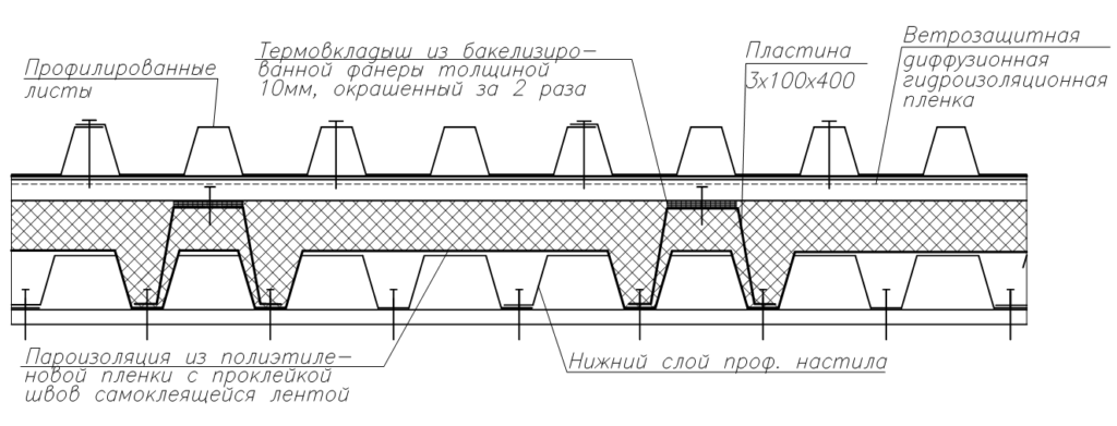 При выполнении перечисленных требований, подобная конструкция кровли из профнастила обеспечивает хорошую герметичность крыши в любое время года.