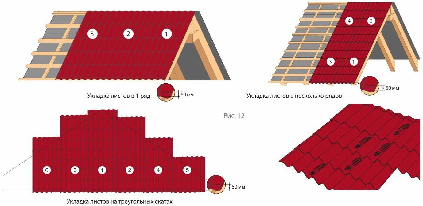 Устройство металлической кровли из профнастила – схема укладки листов с нахлестами