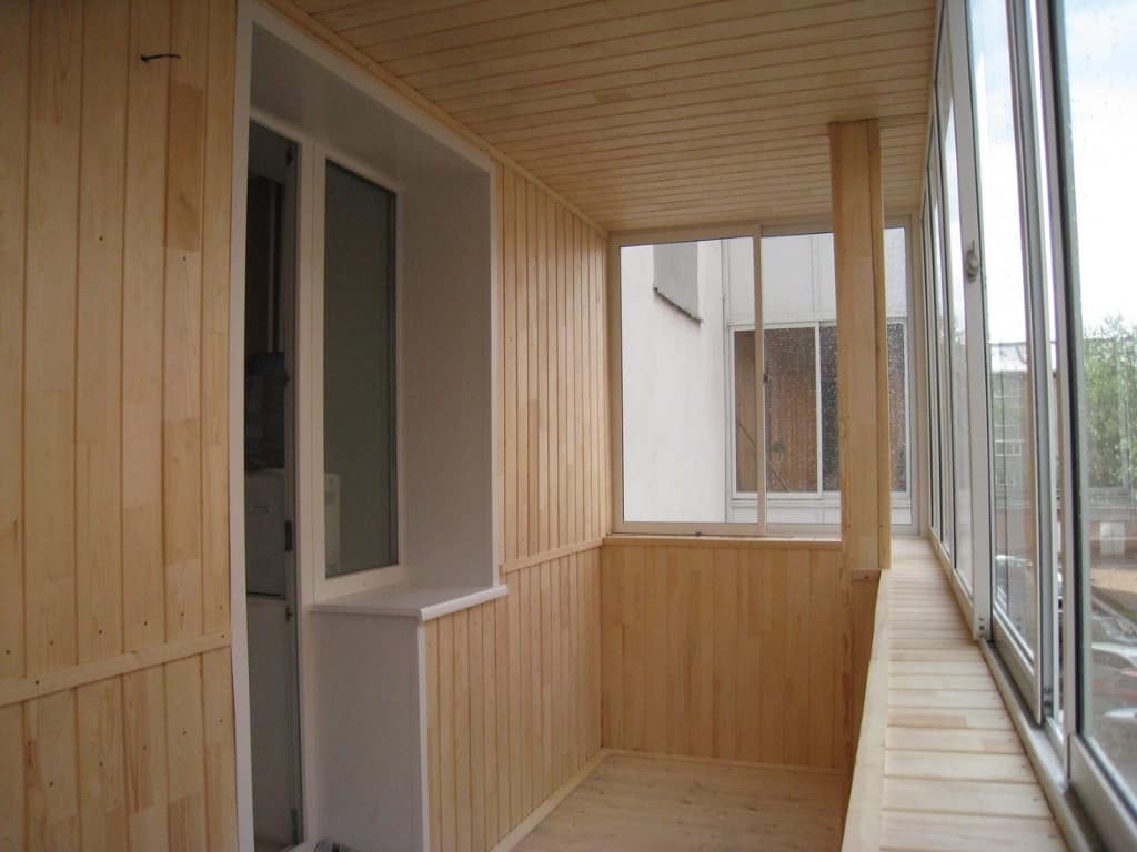 - Отделка деревянными панелями, вагонкой. Необходимо предусмотреть, чтобы вес отделочного материала не перегрузил несущую плиту балкона. Часть деревянных материалов можно заменить на более легкие, без ущерба функциональности и привлекательности.