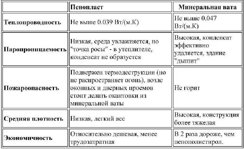 В таблице ниже приведены материалы, отвечающие требованиям и подходящие для утепления стен.