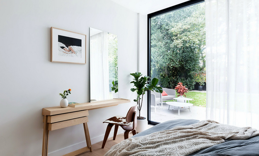Очень важно, чтобы к кровати были подходы с двух сторон (не менее полуметра), иначе утром будет невозможно ее заполнить или поставить прикроватные тумбочки. Если спальня очень узкая и настолько мала, что кровать — единственный предмет мебели, который может поместиться внутри, поместите ее в (самый дальний) угол