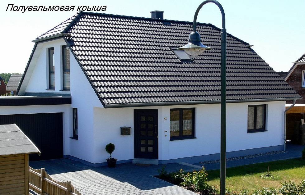 - треугольные скаты могут доходить от конька до карниза (нижней части кровли, примыкающей к стенам) или заканчиваться раньше. Второй вариант называется полувальмовой или голландской кровлей. Разновидностью такой конструкции считается расположение вальмы в виде трапеции не от конька до середины или трети высоты кровельной части, а от середины или нижней трети до карниза. В этом случае образуются небольшие фронтоны, используемые для устройства окон;