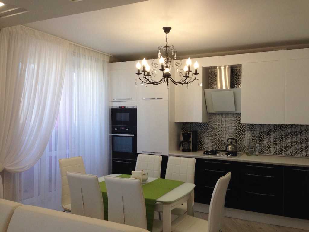 3 Длина занавесок зависит от размеров кухни. В небольшом помещении для экономии пространства используют короткие шторы. Шторы в пол лучше использовать в просторной кухне, объединенной со столовой.