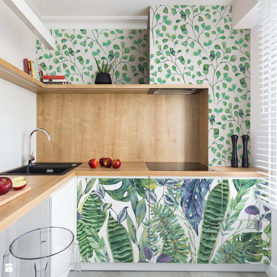 Цветочные узоры обоев распространены при оформлении кухни. Также некоторые стили используют растительный принт на стенах, гарнитуре или элементах декора. Однако при этом существуют правила их применения.