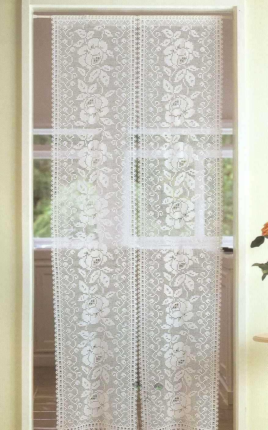 Обратите внимание, что для такого типа вязания можно использовать и схемы из журнала для вышивания крестиком – визуально они очень похожи. Но филейное вязание обычно выполняется в одном цвете, в отличие от вышивки. С помощью техники филейного вязания можно как бы «собрать» штору из нескольких элементов, вязанных отдельно