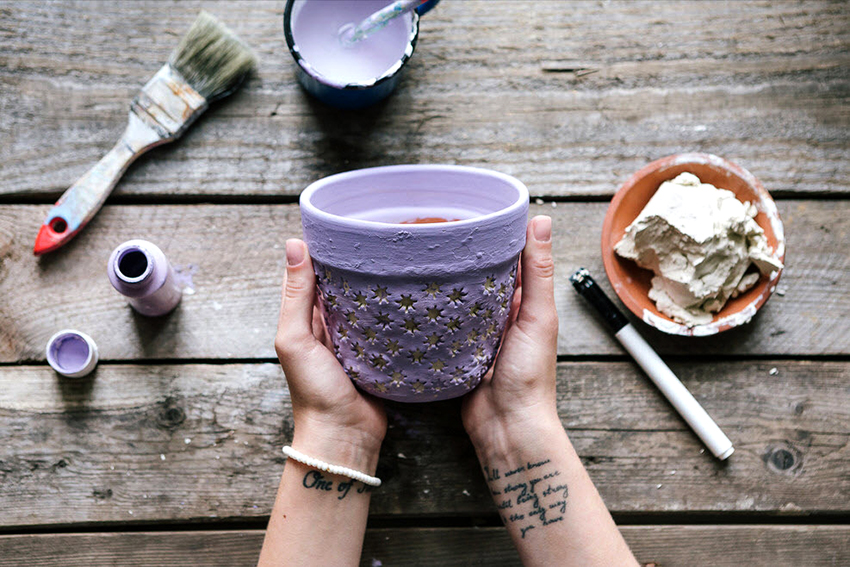 Чем и как украсить горшок для цветов своими руками