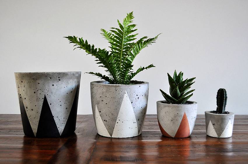 Вы можете раскрасить изделие в любой понравившийся вам цвет. Оригинально смотрятся кашпо из цемента, на которых с помощью кисти и красок прорисована текстура дерева.