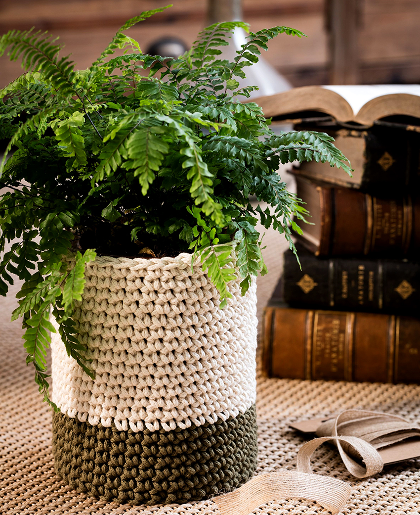 Для цветочного горшка можно связать красивый чехол из ниток