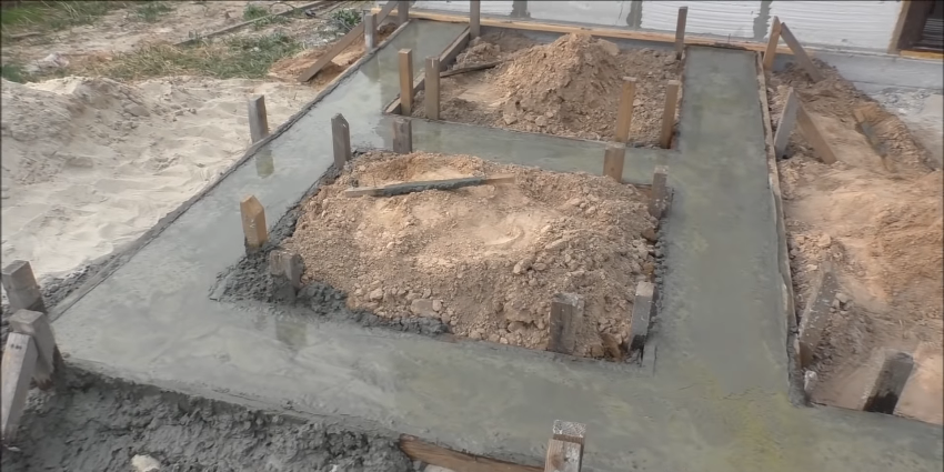 После заливки фундаменту дает время на застывание