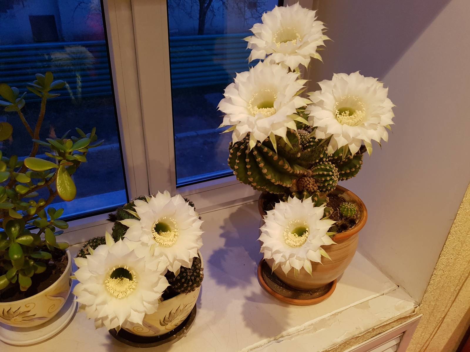 Цветущие домашние кактусы – тоже результат правильного ухода, так как для появления цветов вода и наличие питательных веществ в грунте должно быть оптимальным.