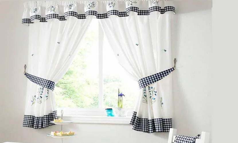 Занавески для кухни шьются из лёгких воздушных тканей. Используется тюль. Мелкий рисунок не всегда уместен, поскольку создают эффект загрязнённости пространства. Хорошо, если цвет тюля сочетается с цветом мебели.