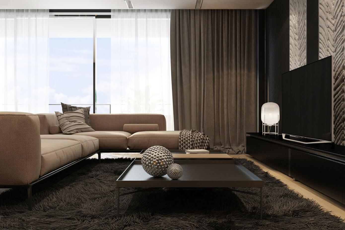 Для оформления минималистичной комнаты подойдут плотные шторы в пол. Цвет при этом должен быть сдержанным, а ткань – мягкой и гладкой. Украшения в минимализме не нужны.